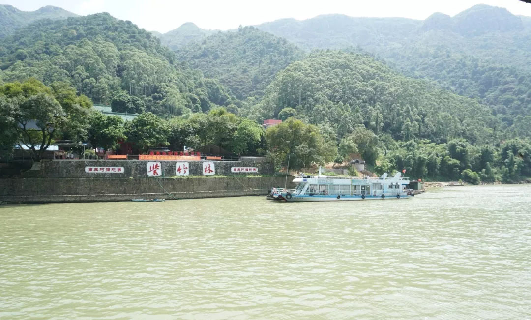 到了清远不能不游江,游江不能不到小北江。在清新县源潭镇的江口码头,一溜儿地排着大大小小的渔船供游客挑选,丰俭由人。尽管路途长达三个多小时的车程,大家还是一路高歌,只是肚子确实已经饿的呱呱叫了。第一站大家在小北江的游船上品尝当地特色菜和各式河鲜,穿梭在两岸的竹林之中,景色秀丽,别有一番风味。