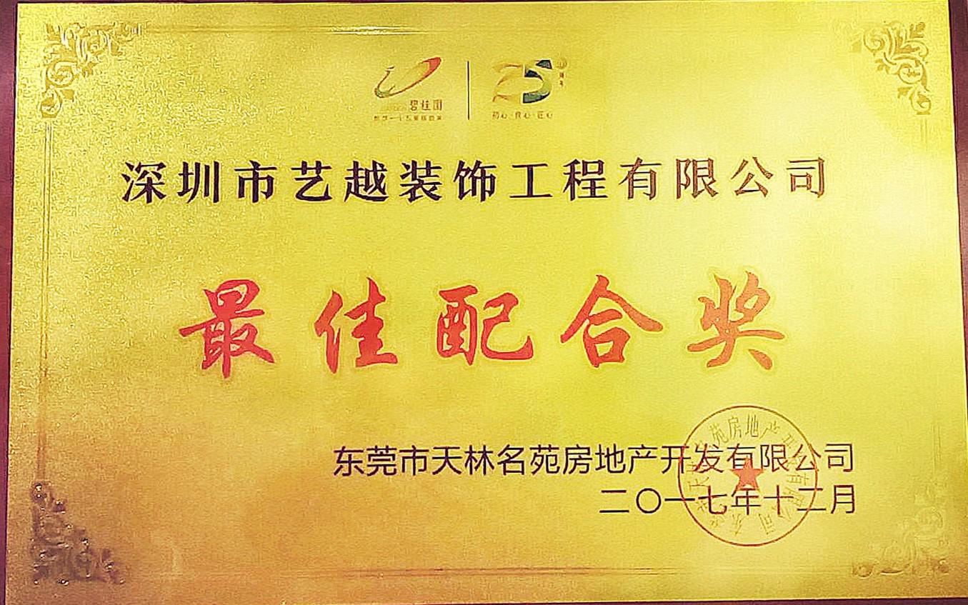 近日,艺越传来喜讯,荣获“最佳配合单位”的称号。