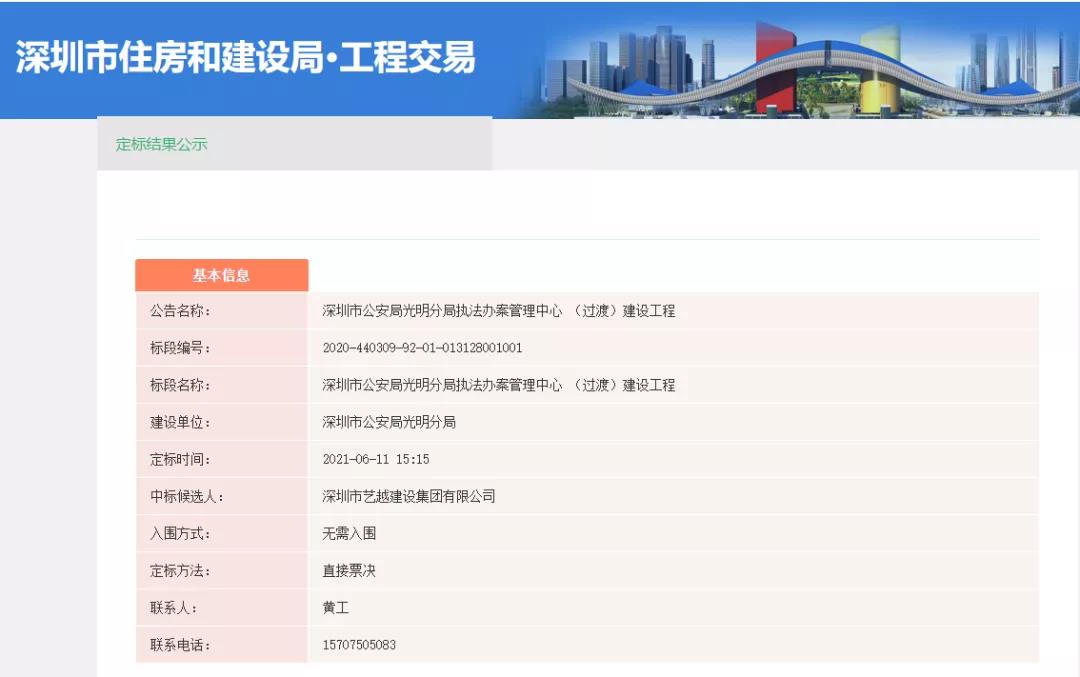 项目名称:深圳市公安局光明分局执法办案管理中心(过渡)建设工程;