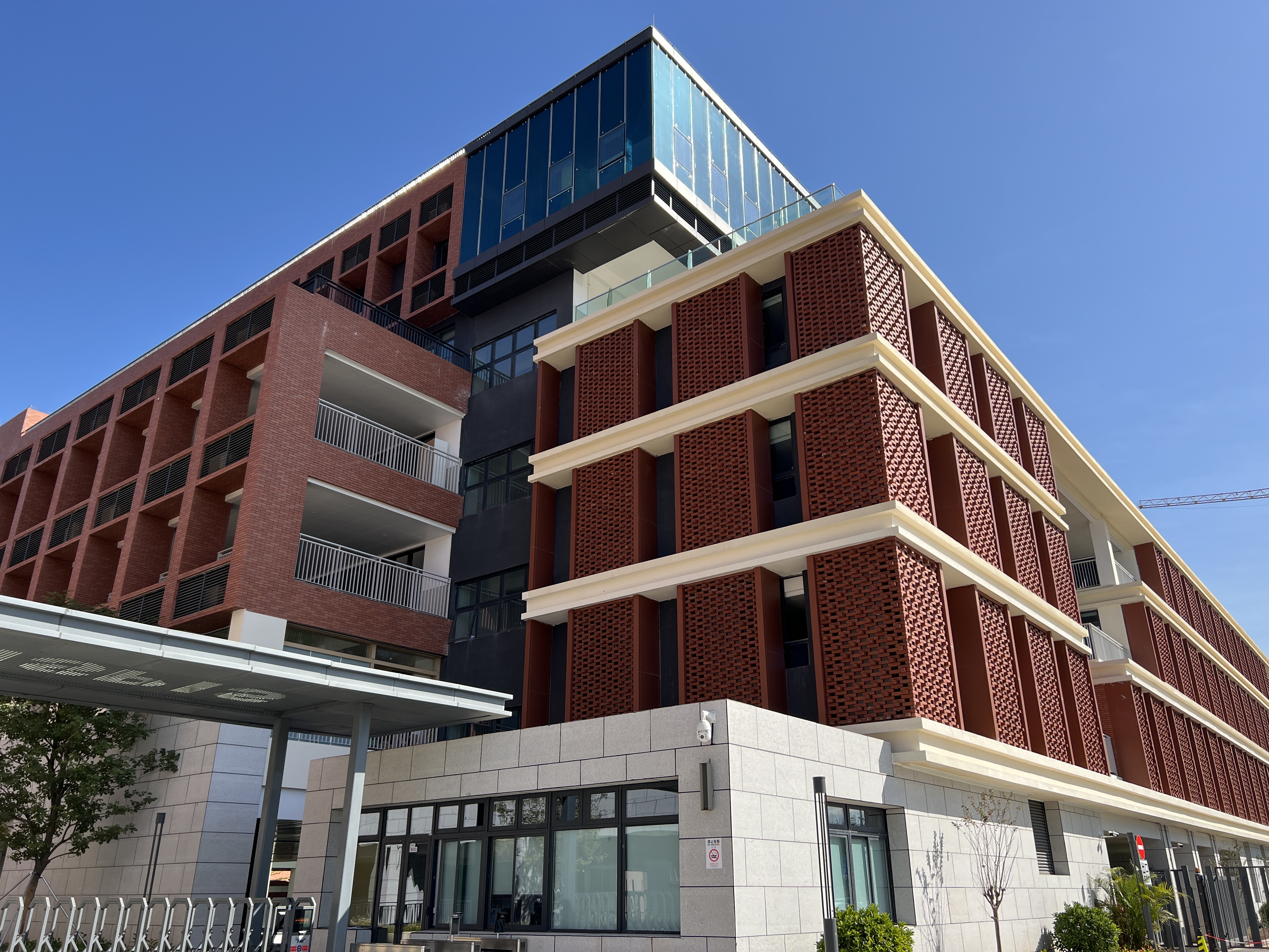 本工程分别有铝单板、陶土板、陶砖及石材等幕墙,幕墙总面积约25000平方米。