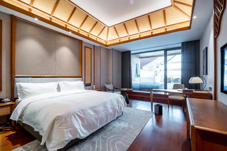 酒店位置依山傍水、以山为邻、以水为友、让人远离城市喧嚣,沉浸在人与自然和谐共生的世外桃源中。