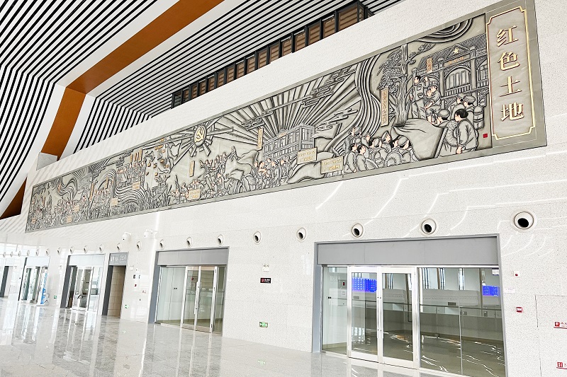 新建梅汕铁路潮汕站南站房改扩建工程位于广东省潮州市潮安区,建筑面积31992㎡,主体一层局部三层,其中新建站房面积28804㎡,改建站房面积3188㎡。包括新建梅州至潮汕铁路站房(不含潮汕机场站)、生产生活房屋(不含四电房屋)、雨棚及相关工程(MSZH-4标)潮汕站南站房改扩建工程装饰装修工程、楼地面工程、墙柱面工程、天棚工程、屋面工程、站台面铺贴、雨棚涂饰、栏杆工程等。潮汕站南站房在崭新的候车大厅,“几”字形灯带与屋顶融合,饱含潮汕民居五行山墙神韵。大厅两侧的商业夹层墙体“千年古城”及“红色土地”历史文化主题石雕,展现潮汕地区深厚的历史文化底蕴和悠久的红色基因。站房以‘海滨邹鲁 古韵新潮’为主题,提取五行山墙、广济楼等文化元素,运用现代、抽象设计手法,将潮汕古韵、人文与简洁、现代的装修设计融为一体,深入挖掘区域文化内涵。