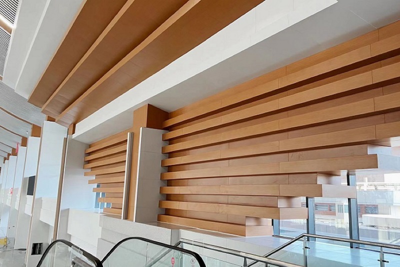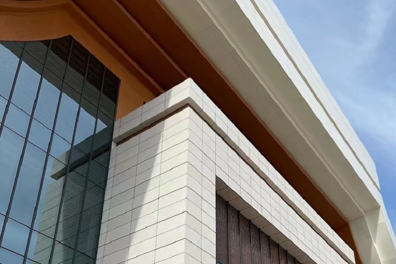 新建铁路梅州至潮汕铁路潮汕站南站房改扩建工程幕墙工程采用竖明横隐玻璃幕墙、石材幕墙、铝板幕墙等,幕墙总面积32000㎡,潮汕站建筑造型融入了当地特色的斜屋面、虎头墙等风格元素; 屋顶采用传统穿斗式和架梁盖瓦的硬山顶结构,玻璃幕墙上嵌有大副木雕花窗,与现代化玻璃钢结构相映衬,站房远眺犹如一座潮汕民居。
