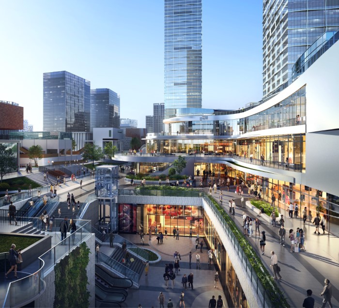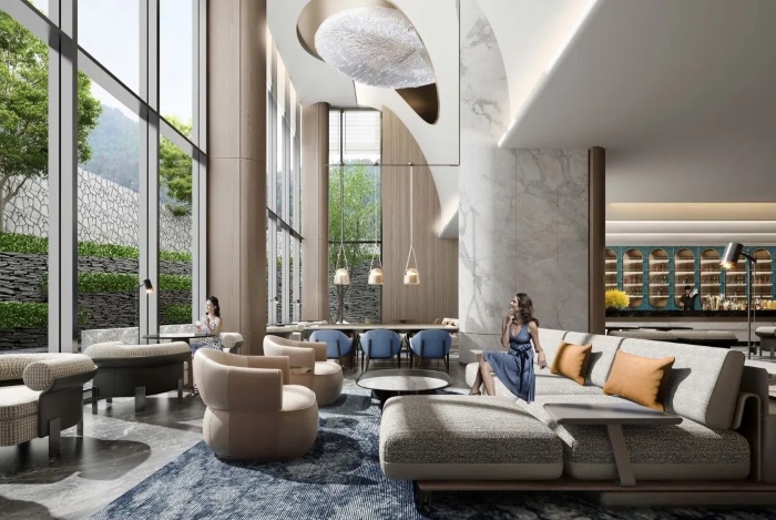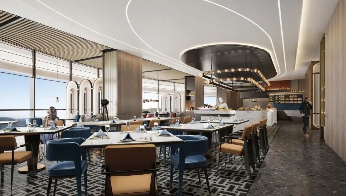 粤海置地大厦位于深圳市罗湖区东晓街道东昌路与太白路交汇处,总建筑面积约25.49万㎡,其塔楼为地上62层,高度303.15m的超高层建筑。艺越建设在本项目主要负责地上5层商业裙楼装修工程。