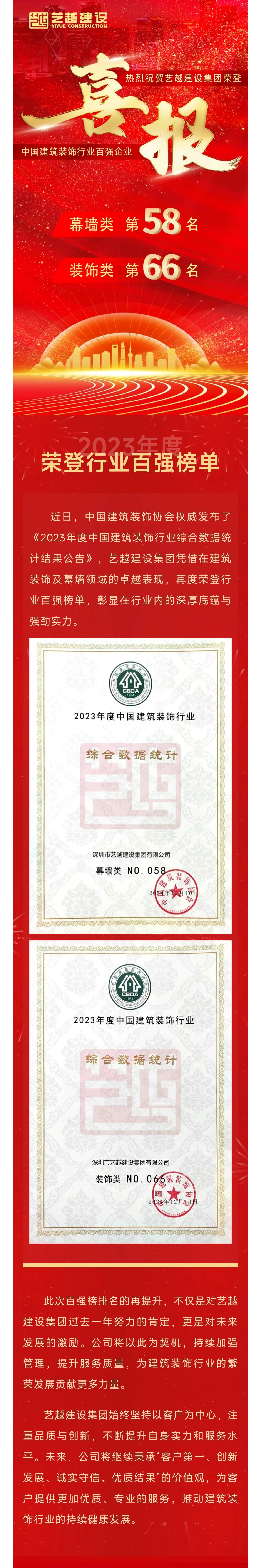艺越基石 | 稳健前行 百强荣誉再添新章