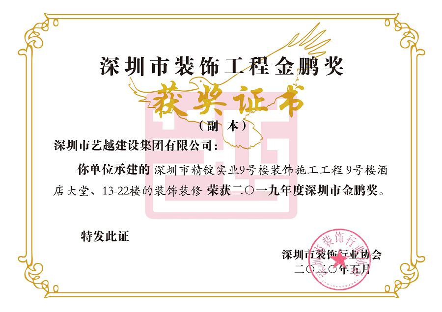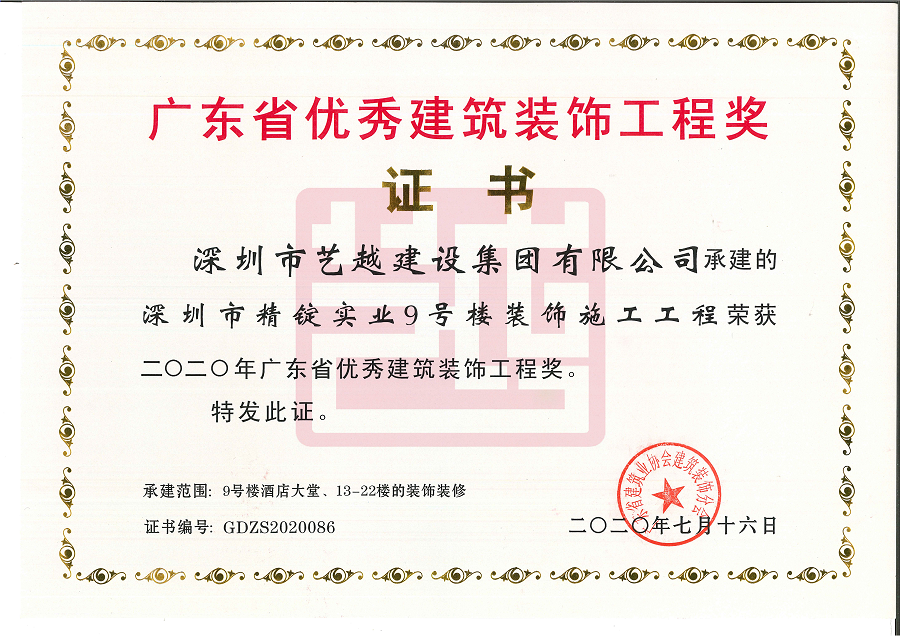 广东省优秀建筑装饰工程奖(深圳希尔顿酒店)