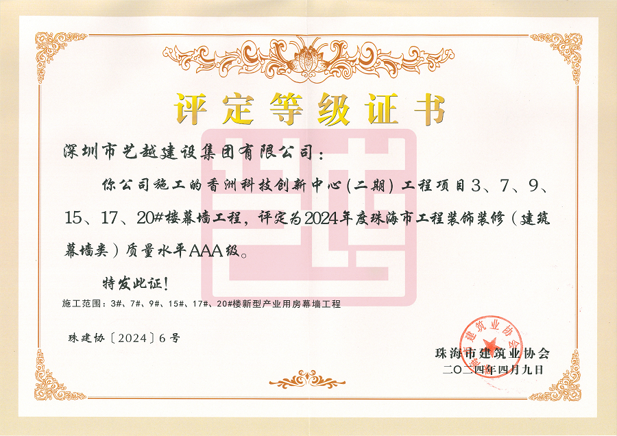 珠海市工程装饰装修质量评定AAA级(香洲科技创新中心)