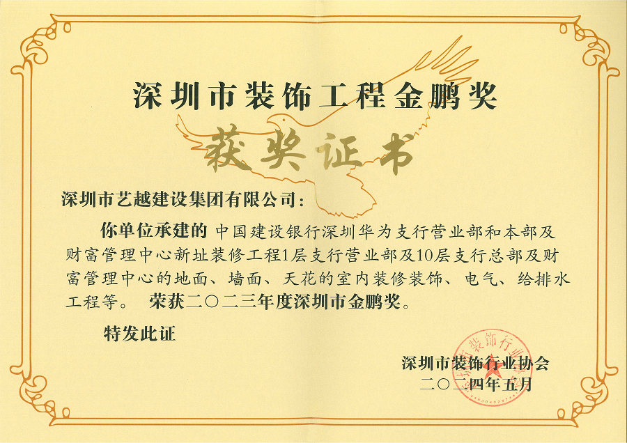 深圳金鹏奖(中国建设银行深圳华为支行)